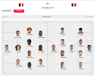 Formacionet startuese të ndeshjes Belgjikë-Rumani