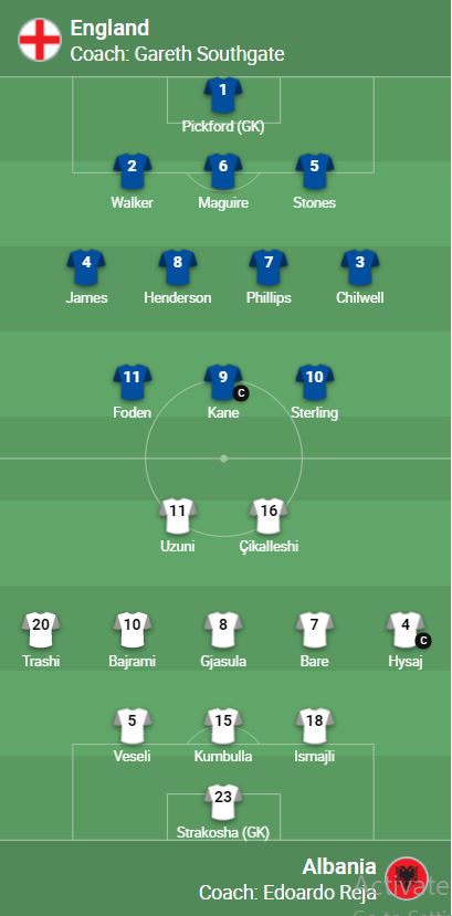 Janë publikuar formacionet zyrtare për ndeshjen Angli – Shqipëri.