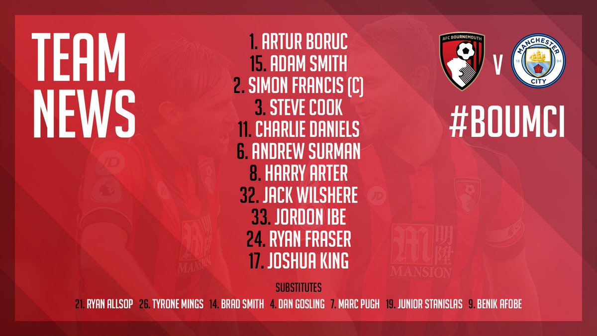 Bournemouth: Boruc; Smith, Francis, Cook, Daniels; Surman, Arter, Wilshere; Ibe, King, Fraser.