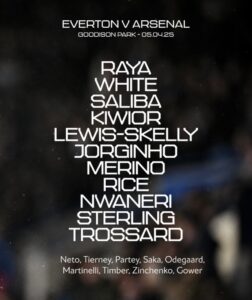 Janë publikuar formacionet zyrtare të ndeshjes Everton – Arsenal, në kuadër të xhiros së 31-të në Premierligë.