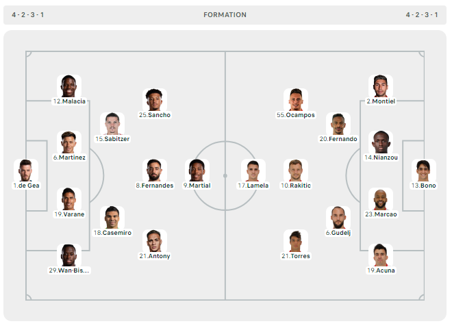 Janë publikuar formacionet zyrtare të ndeshjes mes Manchester Unitedit dhe Sevillas.