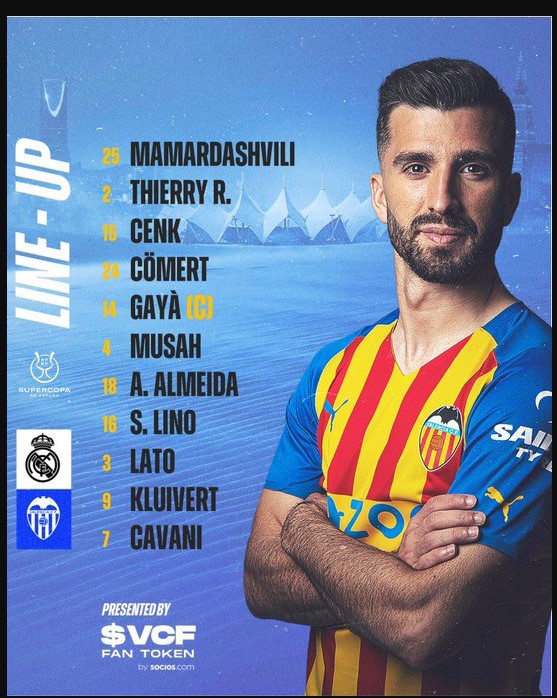 Në anën treshja sulmuese e Valencias përbahet nga Lino, Cavani dhe Justin Kluivert.