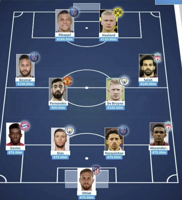 Është e çuditshme të shohim një formacion të madh pa emra si Messi e Ronaldo, por kështu ka ndryshuar tregu. Më poshtë mund ta shihni formacionin. /Periskopi/