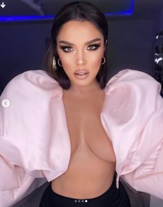 Nën të nuk kishte veshur asgjë, ndërsa vuri në fokus gjoksin dhe barkun e sheshtë teksa mori poza para kamerës.