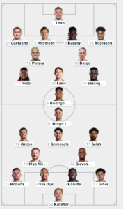 Janë publikuar formacionet zyrtare të ndeshjes mes Fulham dhe Liverpool, e vlefshme për javën e 31-të në Premierligë.