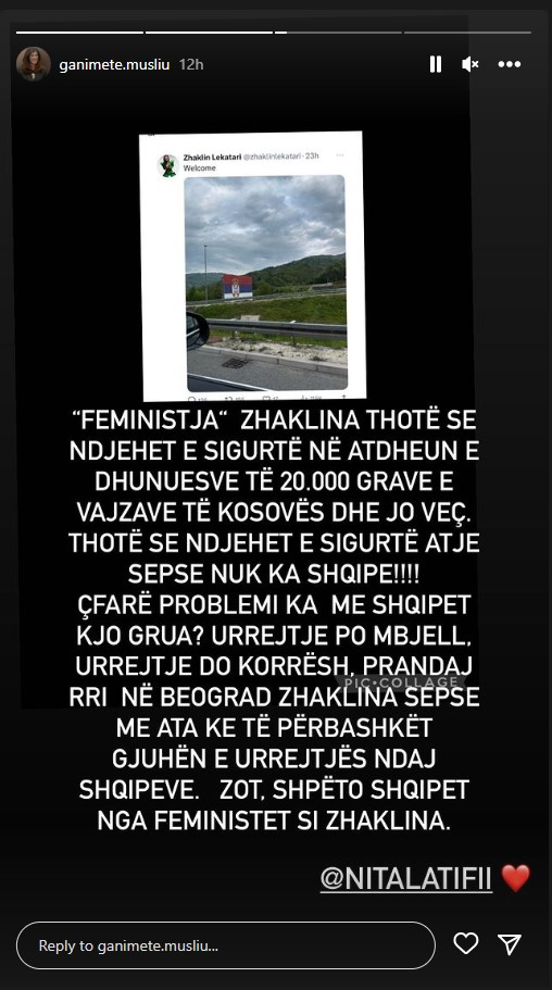 Pas shkrimit të saj, ajo ka etiketuar edhe Nita Latifin e cila u përplasë me opinionisten.