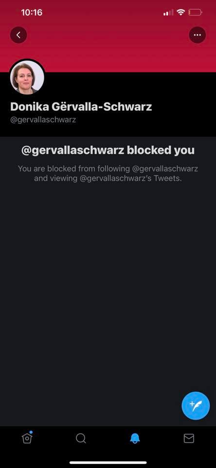 Donika Gërvalla Schwarz – ministre e Punëve të Jashtme dhe Diasporës – duket se ka nisur një fushatë bllokimesh në llogarinë e saj në Twitter pas skandaleve të bëra në muajt e fundit.