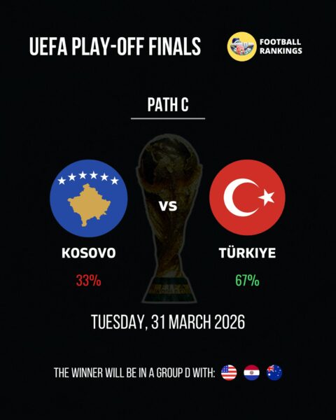 Sipas kësaj faqeje, turqit kanë më shumë gjasa për fitore, ndërsa fituesi do të përfundojë në grup me Shtetet e Bashkuara të Amerikës, me Australinë dhe me Paraguain në Grupin D të Botërorit.