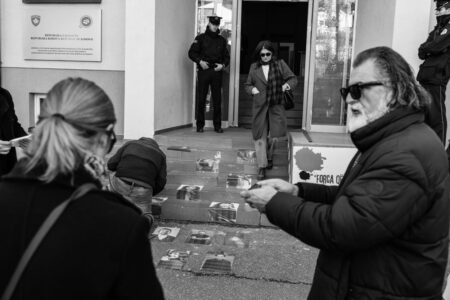 Artistët e Teatrit Kombëtar sot kanë protestuar para Ministrisë së Kulturës dhe Qeverisë së Kosovës.