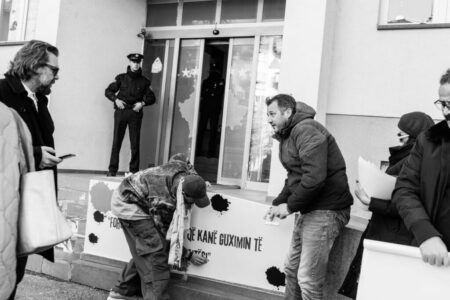 “Gjendje e rëndë, diskriminuese…”, artistët e Teatrit Kombëtar protestojnë para zyrës së Kurtit e Çekut