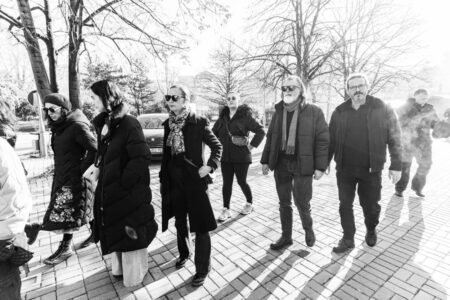 “Sot, permes ketij veprimi simbolik para Ministrise se Kultures,ne,artistet e Teatrit Kombetar te Kosoves,bejme thirrje publike ndaj institucioneve te Republikes se Kosoves per te reflektuar mbi gjendjen e rende,diskriminuese dhe te papranueshme te artisteve.