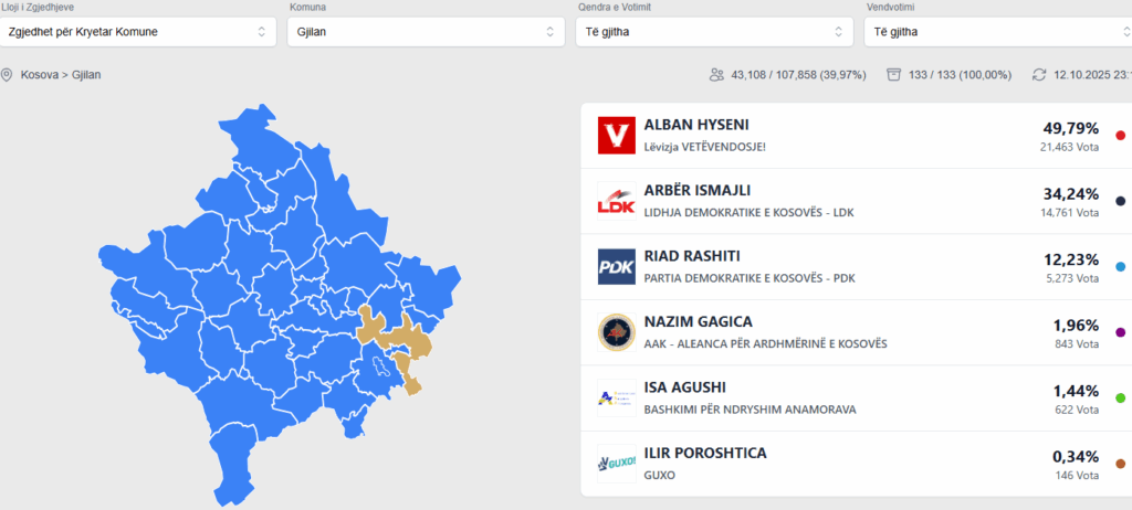 Gjilani shkon në balotazh, VV dhe LDK përballen më 9 nëntor