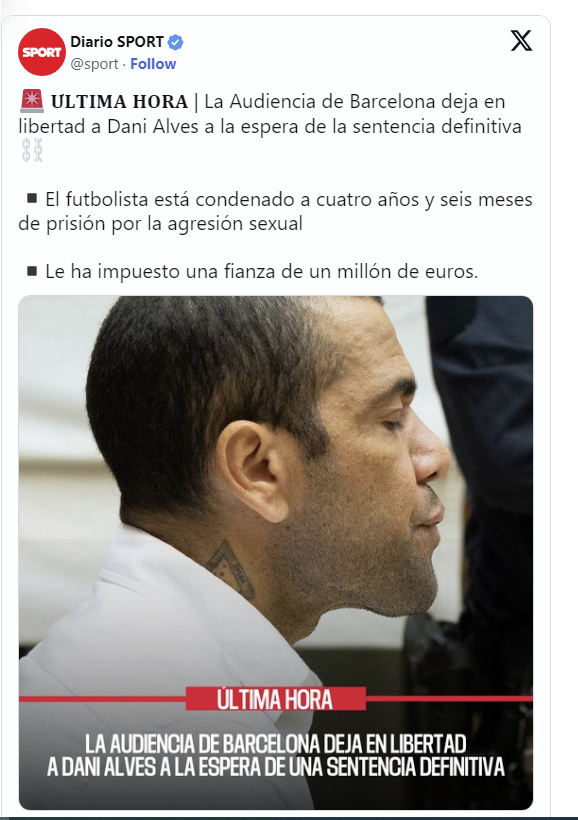 Edhe Prokuroria Publike, edhe prokuroria private dhe lojtari apeluan dënimin dhe tashmë Daniel Alves do të mund të jetë i lirë, në Spanjë, që të shqyrtohet apeli.