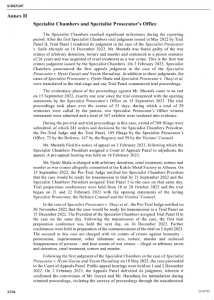 Në raportin zyrtar të OKB-së për Kosovën, që mban datën 5 prill 2023, të cilin e ka siguruar gazeta “Epoka e Re”, në aneksin 2, Gjykata Speciale raporton për aktivitetin e saj për periudhën 16 shtator 2022 deri më 18 mars 2023. Për këtë raport shkruan se është i të dyjave, i Dhomave të Specializuara dhe i Zyrës së Prokurorit të Specializuar, pra i gjykatësve dhe i prokurorëve.