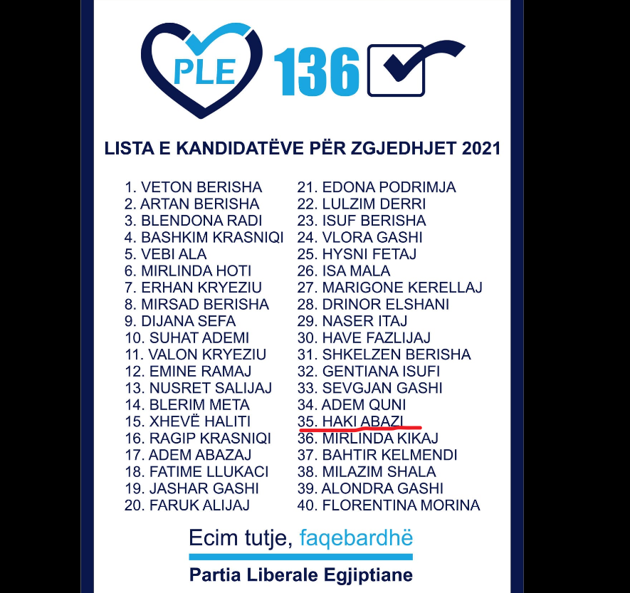 Ajo që bie në sy në këtë listë është emri i Haki Abazit, i renditur i 35-i. Ky është edhe emri i kandidatit të Vetëvendosjes, që në këto zgjedhje do të bart numrin 19 në zgjedhjet e Shën Valentinit.