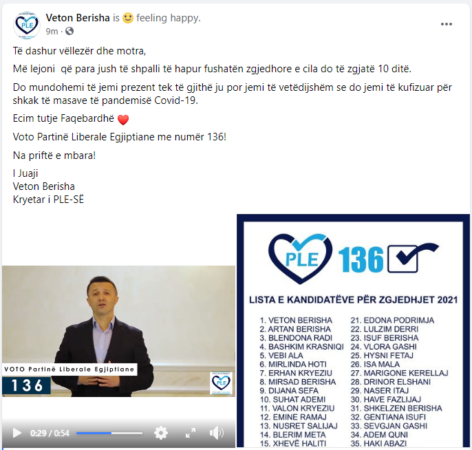 “Ecim tutje Faqebardhë” – ka shkruar z.Berisha, derisa ka zbuluar edhe emrat e listës së kësaj partie të kandidatëve për deputetë.