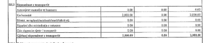 Ndërkaq, 2 mijë euro i kanë shpenzuar për karburante.