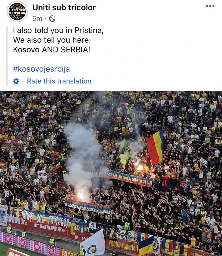 Grupi i huliganëve rumunë, Uniti sub tricolor, doli me postim pasi u kujdes që të ndërpritet ndeshja mes Rumanisë dhe Kosovës.