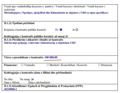 Vlera e parashikuar e këtij tenderi kapte vlerën e 100 mijë eurove.
