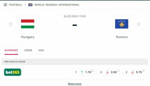 Bazuar tek kuotat e basteve, Hungaria është favorite dhe fitorja e saj kuotohet me 1.70, barazimi me 3.30, kurse fitorja e ‘Dardanëve’ kuotohet me 5.75.