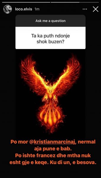 “Po mor Kristian Marcinaj, nermal aja pune e bab. Po ishte francez dhe mtha nuk esht gje e keqe. Ku di un, e besova”, u përgjigj ai.