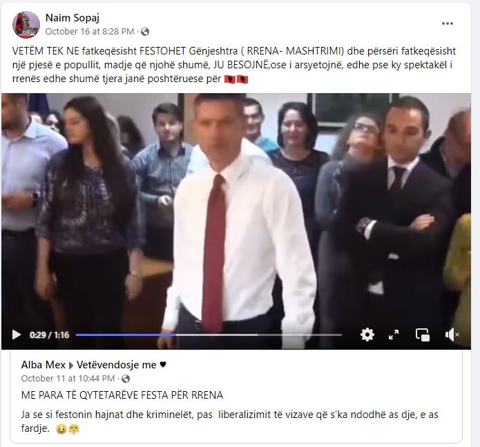 Postimet e tij në rrjetin social “Facebook”.