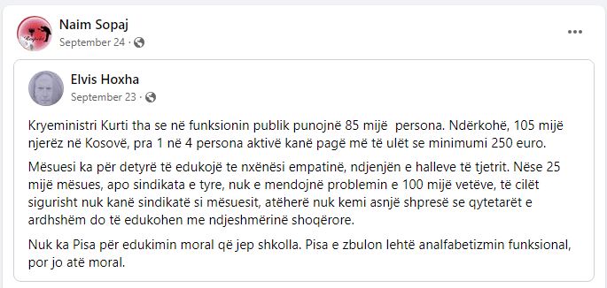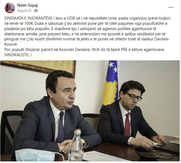 Naim Sopaj pos që ka qenë punëdhënës i zëvendësministrit, Hysen Durmishi, është militant i partisë në pushtet, Lëvizja Vetëvendosje.