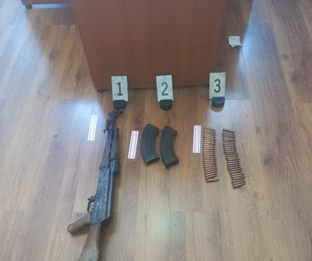 Në koordinim me prokurorin e Shtetit, në vendin ku i dyshuari kishte qëndruar, gjatë bastisjes, janë gjetur dhe janë sekuestruar një armë AK-47, dy karikatorë të së njëjtës armë dhe 55 fishekë të kalibrit 7.62 mm.