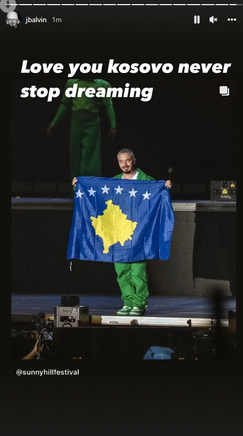 “Të dua Kosovë, kurrë mos ndaloni së ëndërruari”, ka shkruar J Balvin bashkangjitur me një fotografinë ku shihet duke mbajtur flamurin e Kosovës.