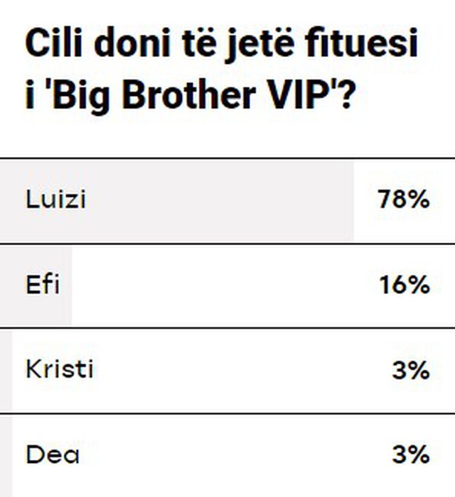 Luizi ka marrë 78% të votave, Efi 16% dhe Dea e Kristi nga 3% secili.