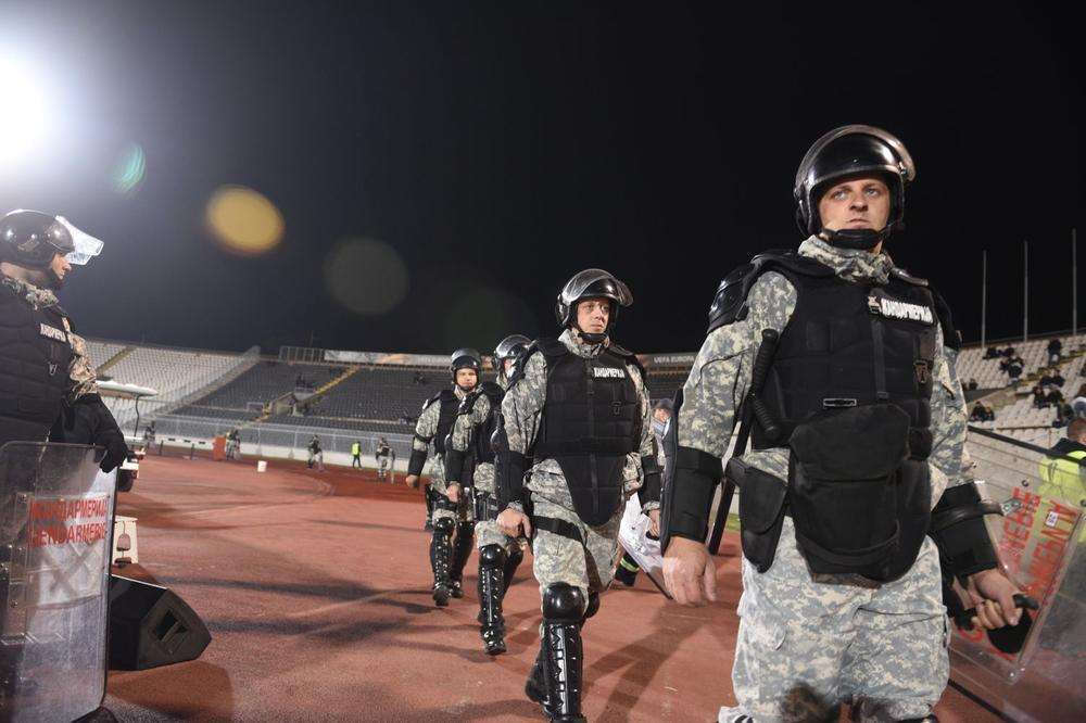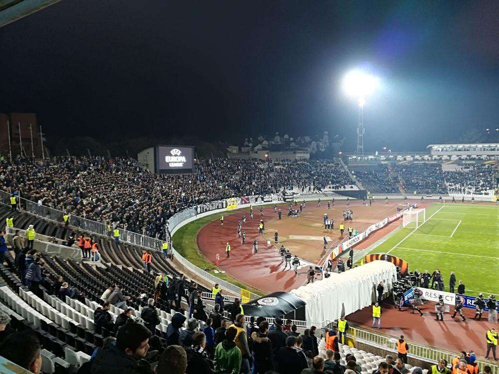 Kjo që shihni në fotogalerinë e mëposhtme është situata aktualisht përreth stadiumit të Partizanit të Beogradit, impiant ku do të luhet ndeshja, e po ashtu edhe brenda tij.