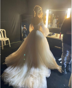 51-vjeçarja gjithsesi ka emocionuar fansat me foton e fustanit të nusërisë, një veshje e punuar me delikatesë dhe me shpatull të rënë, për të cilin Jennifer tha se i rrinte i fiksuar “si një dorezë”.