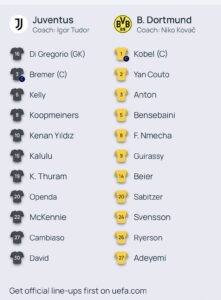 Juventus – Dortmund, publikohen formacionet zyrtare