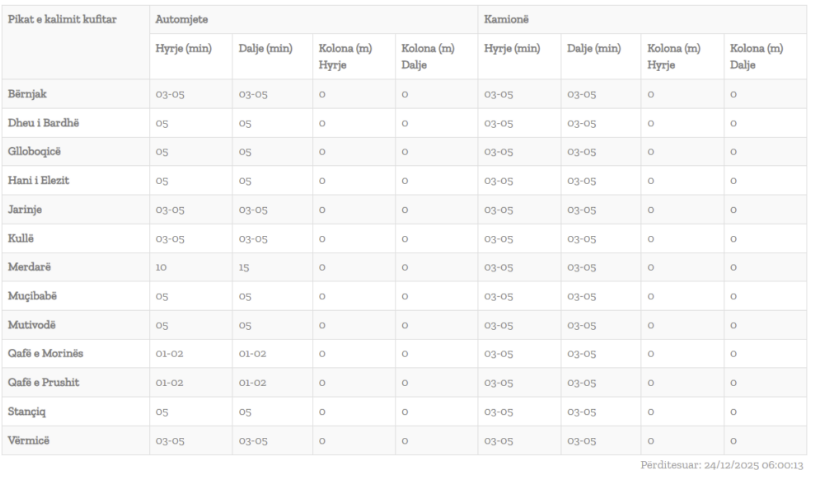 Por, të dhënat e fundit të përditësuara sot në orën 6 të mëngjesit pohojnë se të gjitha pikëkalimet kufitare janë të lira për qarkullim.