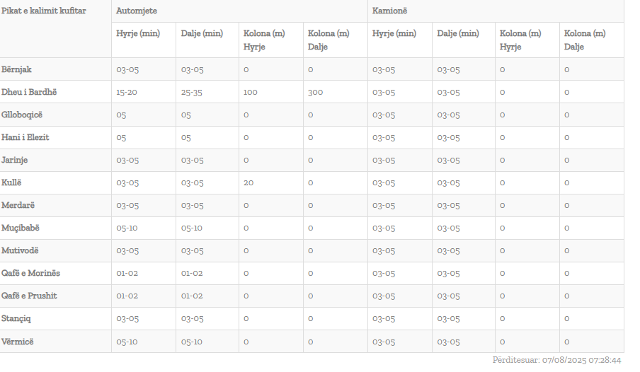 Sipas të dhënave të publikuara në faqen zyrtare, aktualisht pritjet për të hyrë në Kosovë janë të shkurtra