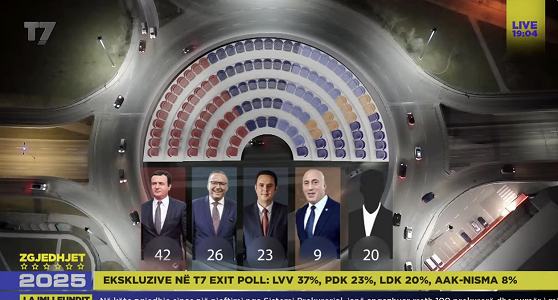 Sipas këtij Exit Polli, Vetëvendosje do të ketë 42 ulëse, PDK 26, LDK 23 dhe AAK 9 ulëse.