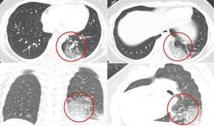 Gjysma e pacientëve e kishin atë që njihet si “shenja halo”, që shfaqet kur infeksioni e rrethon një masë, të njohur si konsolidim.