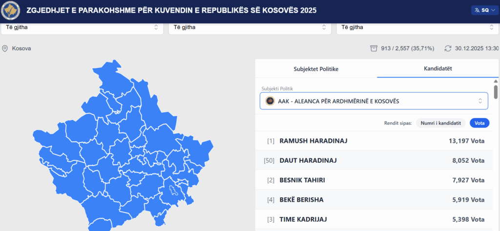 Daut Haradinaj ka gjithsejtë 8 mijë 52 vota.