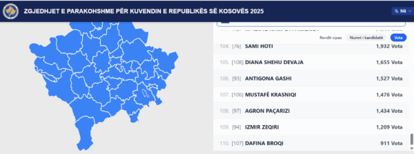 Në vendin e parë është kandidatja Dafina Broqi më 911 vota.