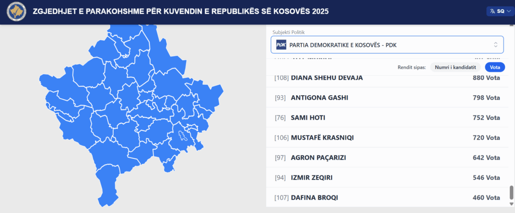Nga Partia Demokratike e Kosovës (PDK), këta janë pesë kandidatët që kanë marrë më së paku vota.