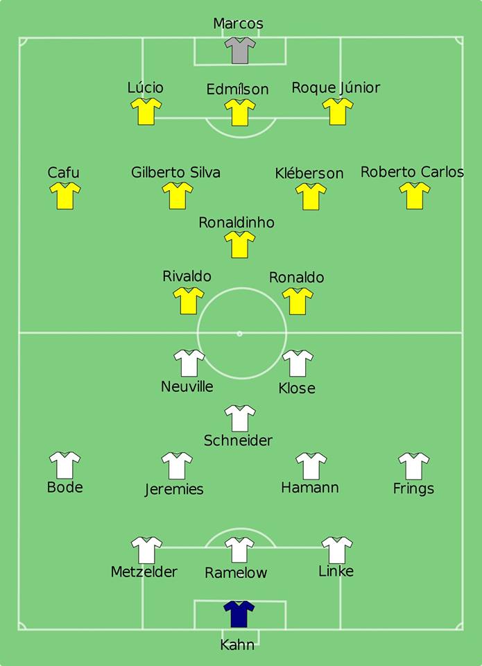 Duke njohur cilësinë e përberjes së kombëtares braziliane të kampionatit 2002, për të cilën përbërje ekzistojnë pajtueshmëri se ishte më kualitativia në historinë e futbollit, ka qenë e pritshme qe Kupa Botërore t’i takojë Brazilit. Këtë pritshmëri e bëri realite ish- sulmuesi i Barcelonës dhe Real Madridit, Ronaldo i cili më dy golat e tij ia solli kombëtares së tij titullin e pestë botëror.
