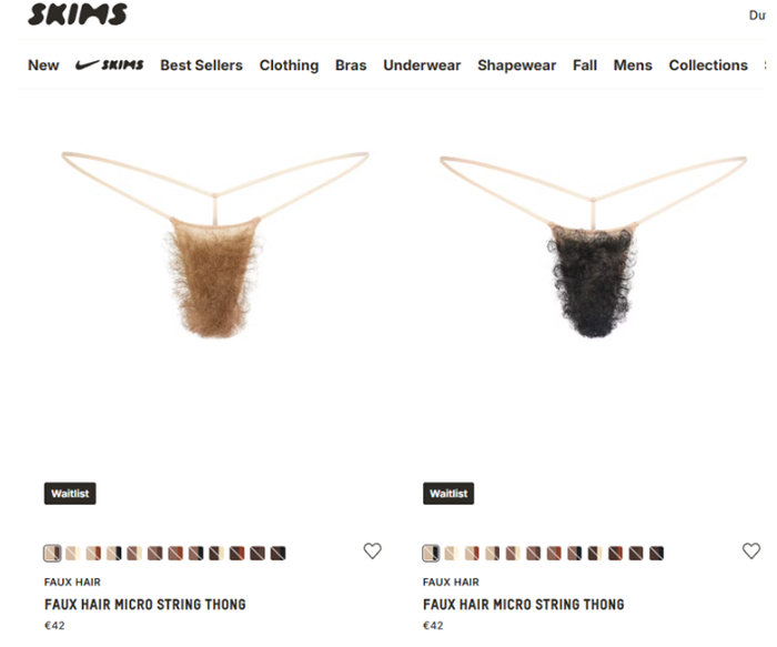 Kompania e Kim Kardashian, SKIMS, ka lansuar produktin e saj më të diskutueshëm deri më tani – një linjë tangash me qime pubike artificiale, të disponueshme në të kuqe, blu dhe kafe, si dhe në tekstura të drejta dhe kaçurrela.