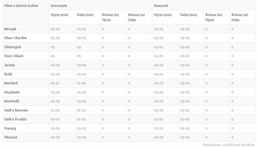 Qendra kombëtare për menaxhim kufitar ka përditësuar të dhënat mbi pritjet në pikëkalimet kufitare.