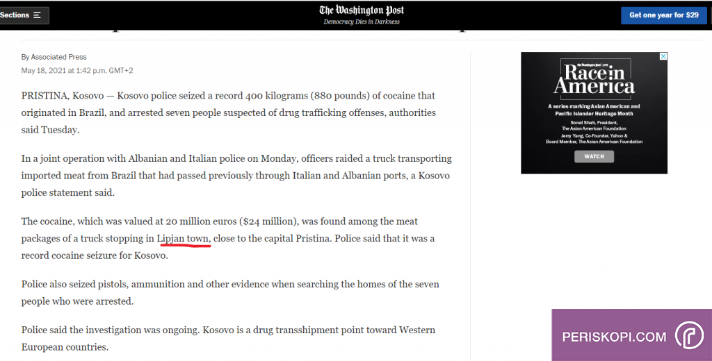 Kokaina e fut në hartë Lipjanin: talljet në RrS, raportimet e mediave botërore, historia