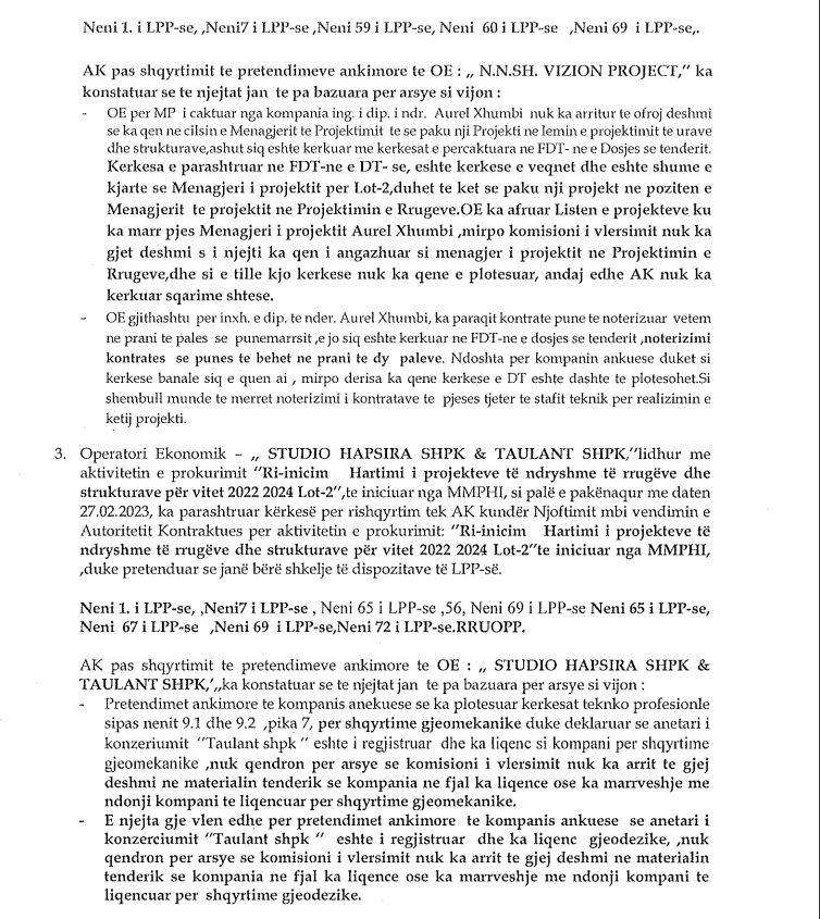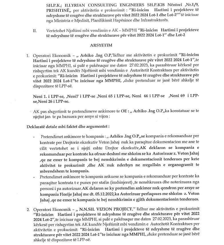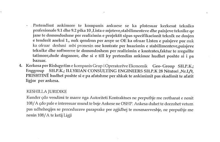 Megjithëkëtë, akoma nuk dihet saktë nëse “Infratek” do të mund të lidhë kontratë më MMPHI-në, pasi të enjten (dje) është bërë pezullimi i tenderit për shkak se dy kompani kanë parashtruar ankesë në ministri, duke pretenduar se kompania e rekomanduar për lot 1 nuk ka qenë e përgjegjshme. Po ashtu, një kompani është ankuare dhe për lot 2. Për lot 3 nuk ka pasur ankesa. Por, ankesat i ka hedhur poshtë ministria, duke e lënë në fuqi vendimin e vet për rekomandim të kontratës. Kompanitë kanë të drejtë që në afat prej pesë ditëve të ankohen edhe në Organin Shqyrtues të Prokurimit -OSHP. Mbetet të shihet nëse do të bëjnë këtë. /Periskopi/