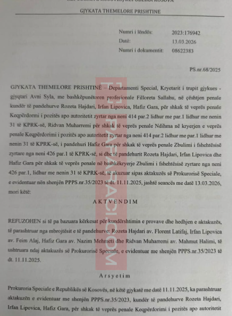 Gjykata Themelore në Prishtinë e ka konfirmuar aktakuzën ndaj Rozeta Hajdarit.