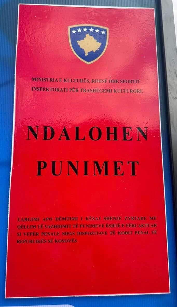 Ministria e Kulturës afër punimeve ku po zhvillohen ka vendosur një tabelë me mbishkrimin “Ndalohen Punimet”.