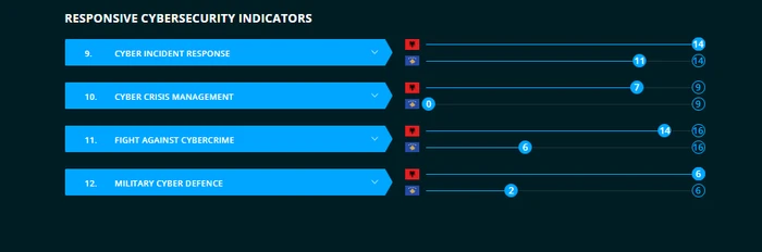 Në sigurinë e infrastrukturës kritike, Kosova ka 6 pikë kurse Shqipëria ka 12 pikë, në sigurinë e shërbimeve digjitale Kosova 8 pikë, Shqipëria 12.