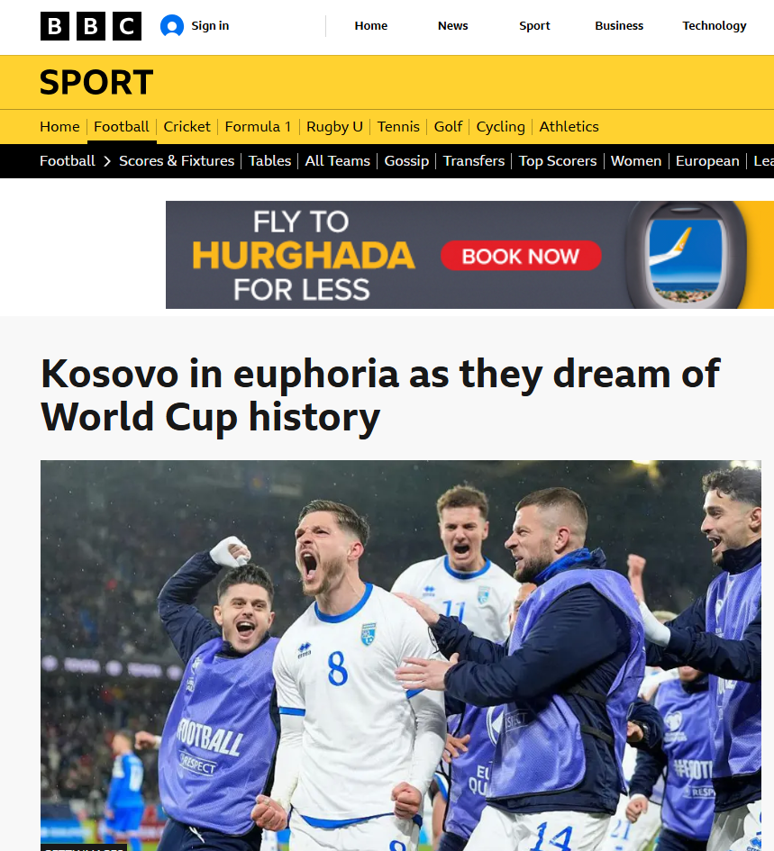BBC në një artikull ka shkruar “Kosova në eufori ndërsa ëndërron historinë e Kupës së Botës”.