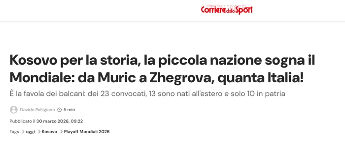 Mediumi italian, Corriere dello Sport, shkruan se Kosova është një tjetër “përrallë ballkanike”, një përzierje rrënjësh, largimesh, rikthimesh dhe fëmijësh të shpërndarë në gjithë Evropën. Ata janë ndalur te yjet e Kosovës që luajnë në Itali, apo kanë luajtur në të shkuarën.